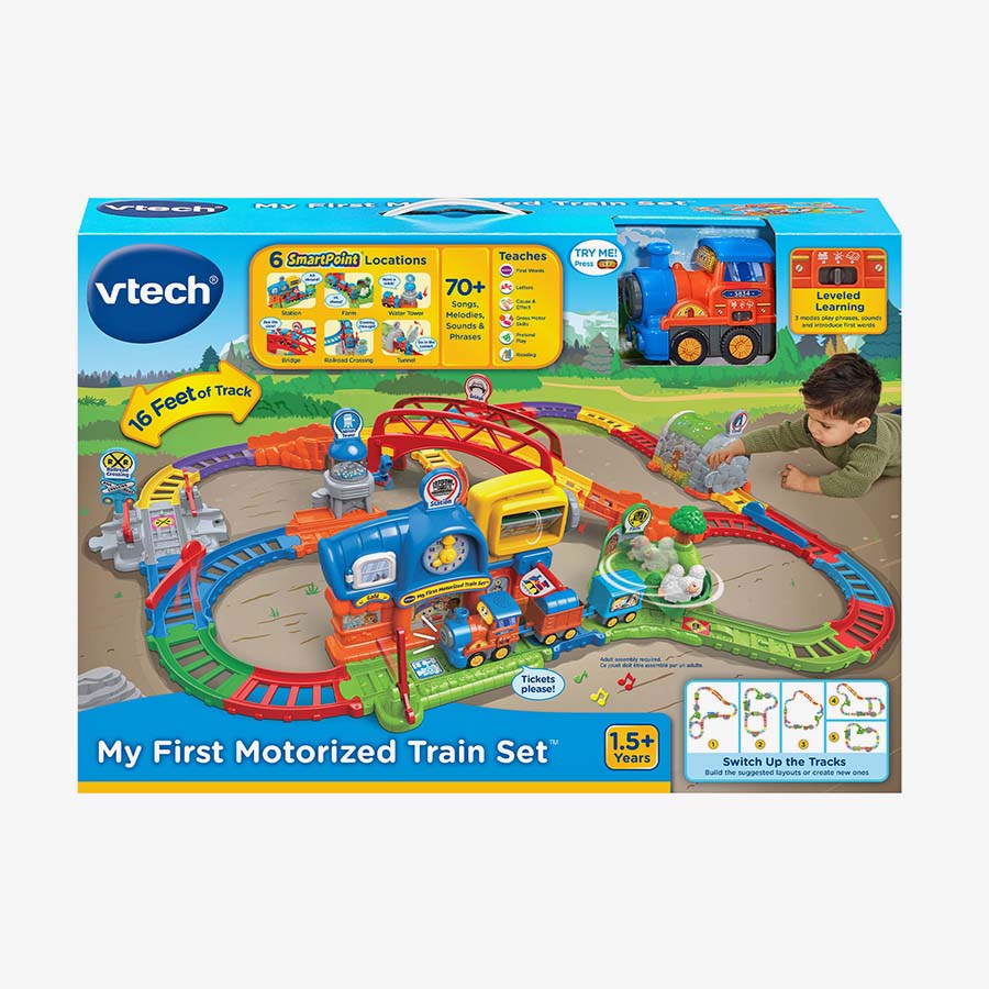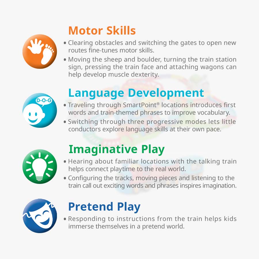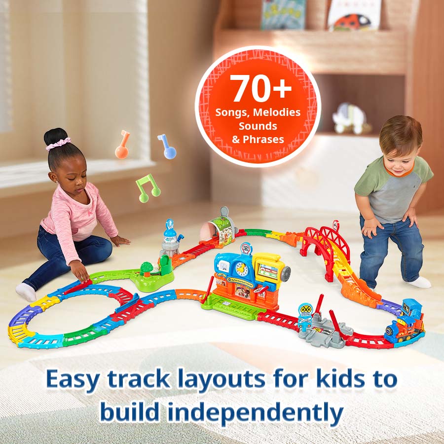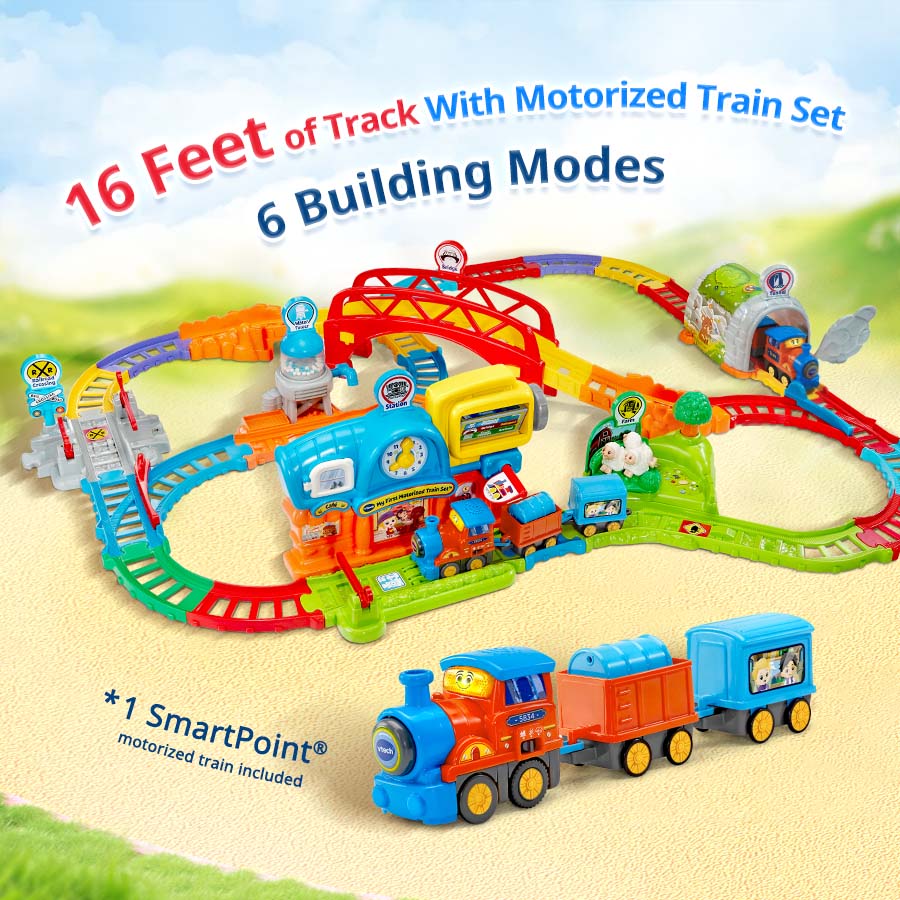 - 請上車!小朋友可以喺互動感應嘅電動火車上選擇三種學習模式,帶住兩節貨卡沿五米長軌道出發