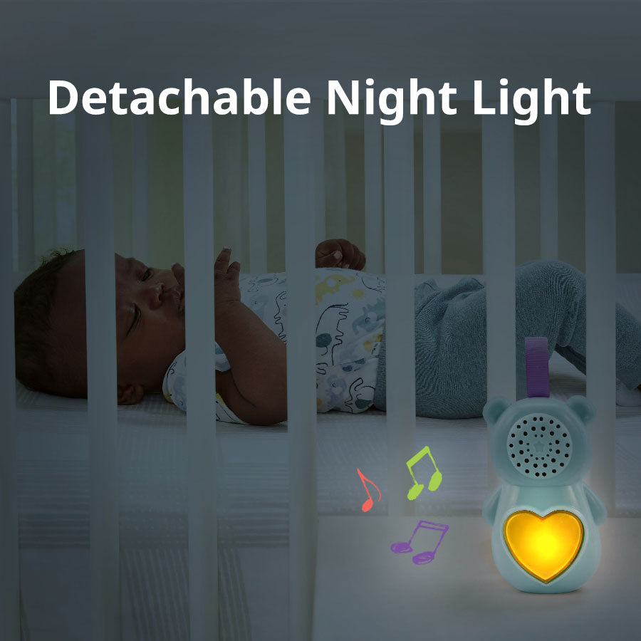 - Detachable night-light creates a gentle glow in the nursery or on the go; remove night-light to pop bear in the washer