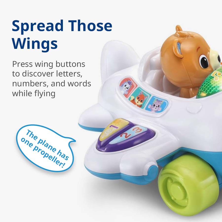 - Introduce ABCs, 123s and airplane words by pressing the wings' colorful buttons as little pilots take to the skies