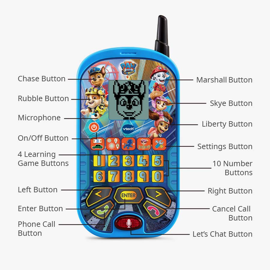 - Hear voice messages from Chase, Marshall and Skye and watch fun animations of Chase, Marshall, Skye, Liberty and Rubble on the LCD screen