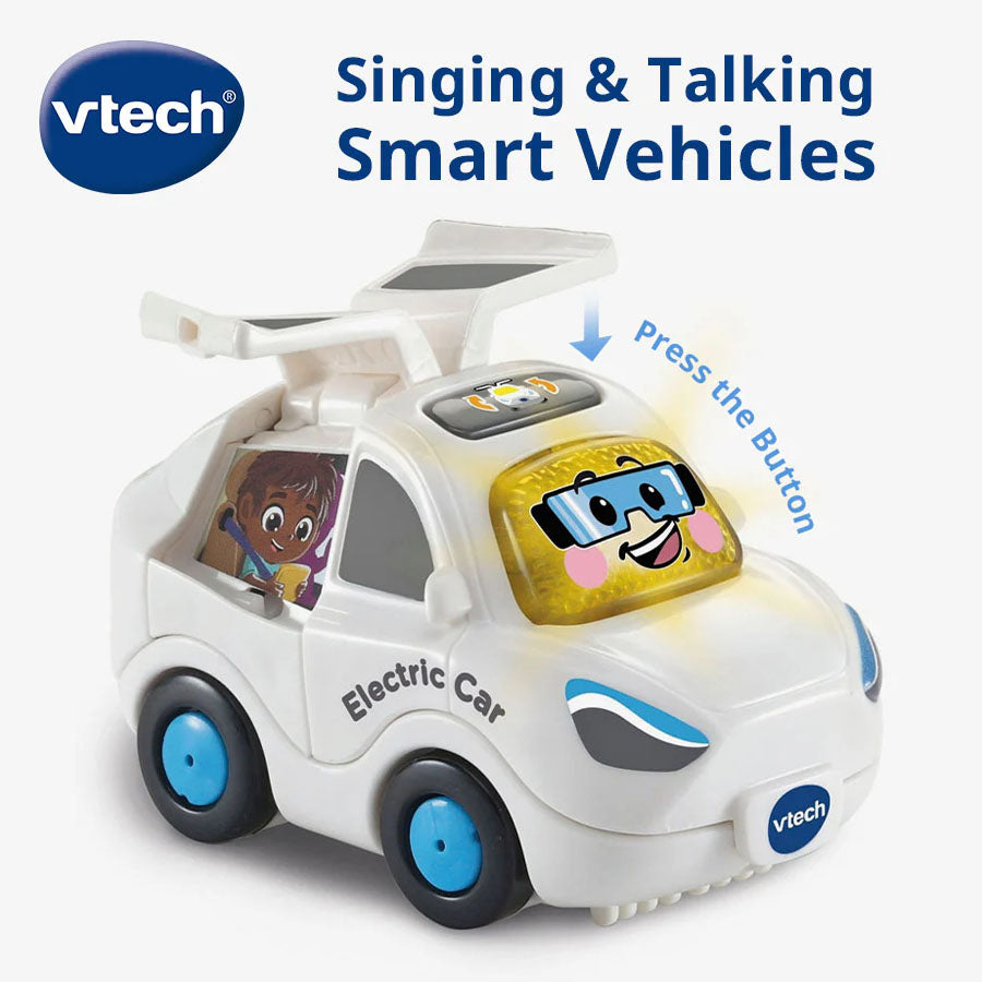 - Push the electric car along for more fun reactions or open the gull wing doors for manipulative play