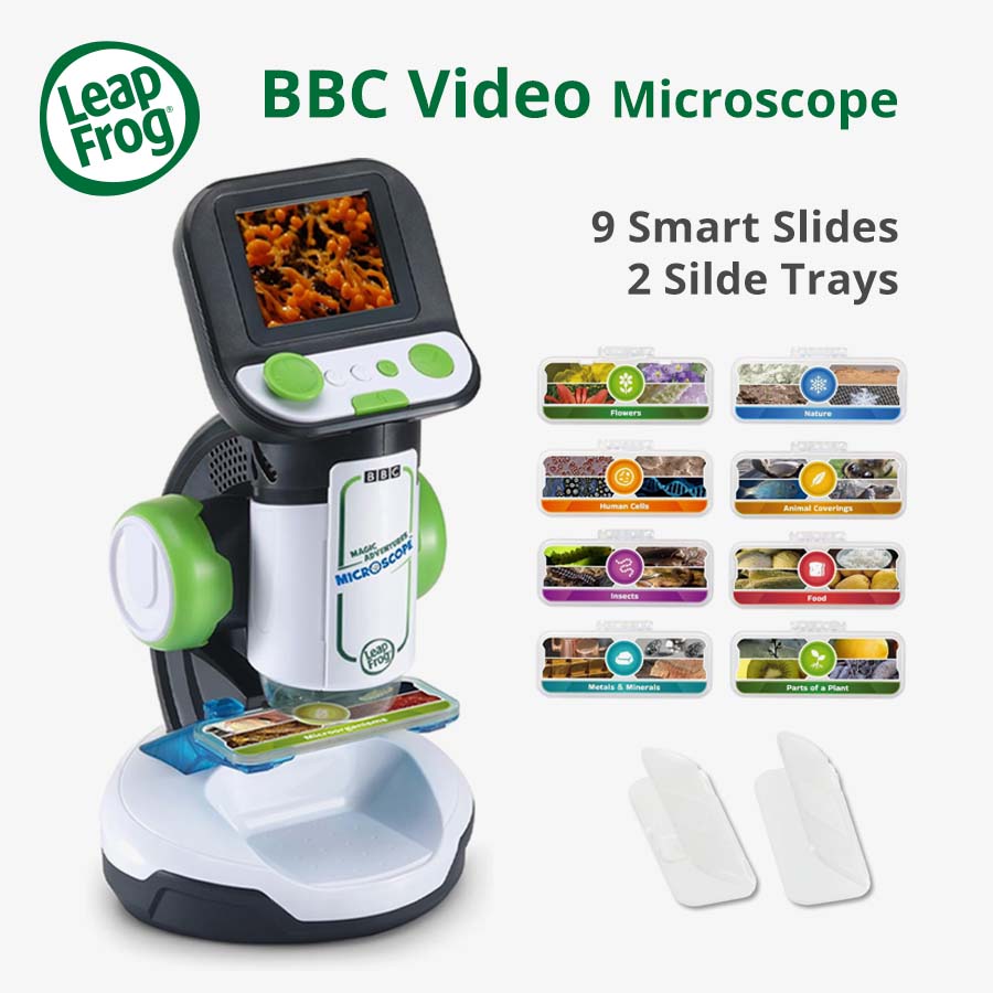 • Clip the nine included smart slides under the microscope lens to see 240+ custom BBC videos and images