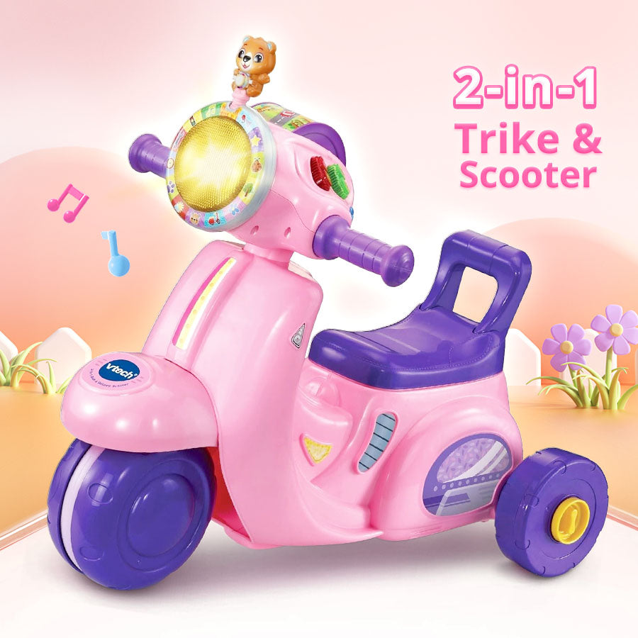 - Cute scooter converts from 3-wheeled tricycle to a 2-wheeled balance bike