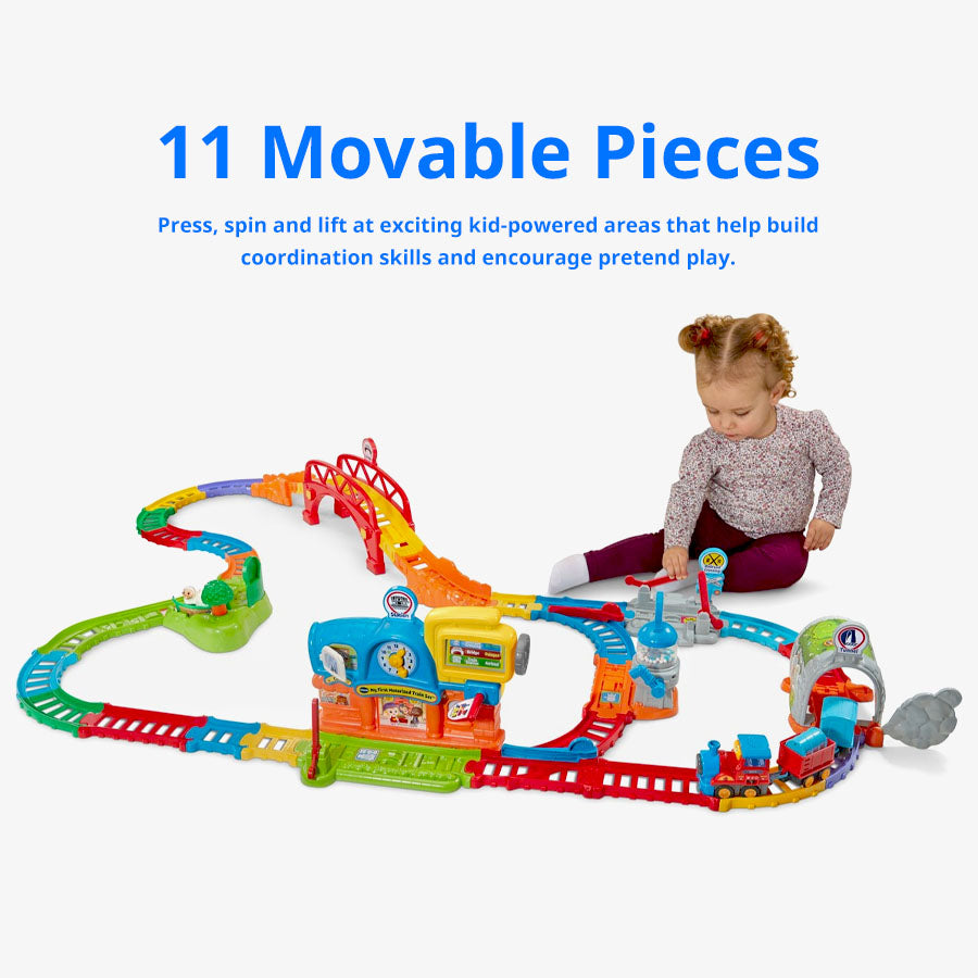 Next stop, learning fun! All aboard the motorized toy train to chug along 16 feet of track, visit six SmartPoint locations and inspire exciting adventures.