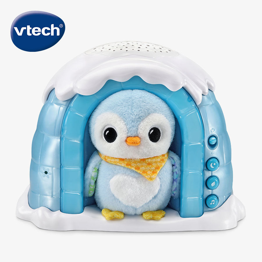 Snooze and self-soothe with this chill penguin and its adorable igloo! Perfect for afternoon catnaps and bedtime, the igloo projects a peaceful starry sky with twinkling lights on the ceiling, or choose night light for a softer glow from the igloo's door. This igloo comes with a removable and machine-washable plush penguin that can accompany little ones out and about during the day, then get ready for bedtime by tucking the penguin inside to activate the lights. Customizable controls allow the freedom of choice on sounds, volume and duration to snuggle down in the perfect peaceful environment. Play up to 45 minutes of white noise, nature sounds or calming lullabies as they drift off, and the cry sensor automatically responds if babies become restless during the night.  Sweet dreams!