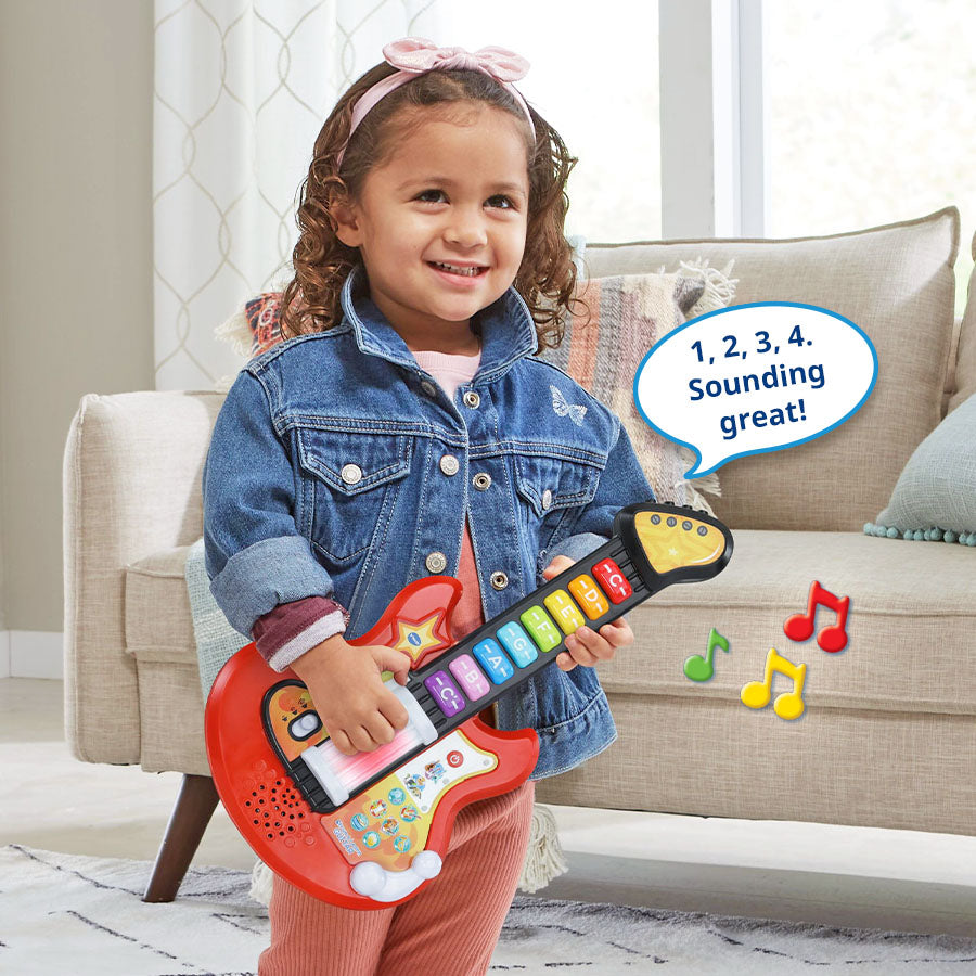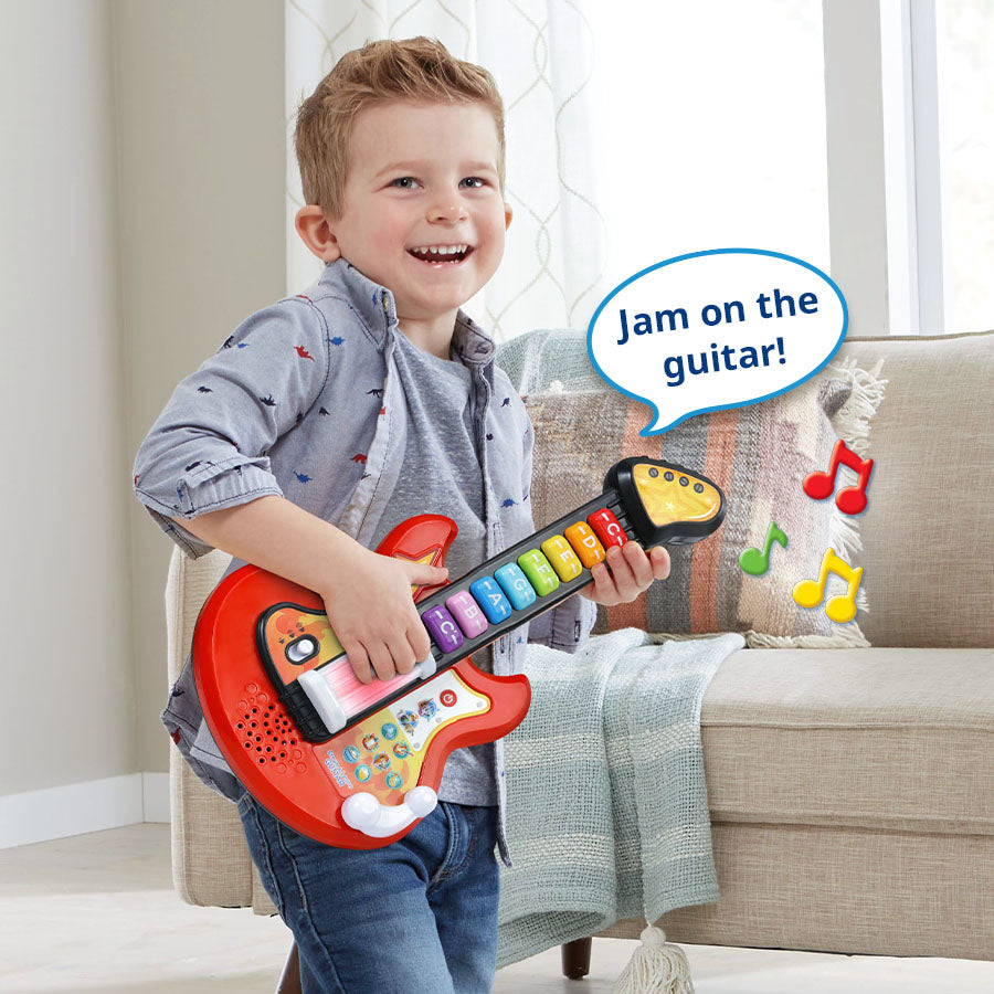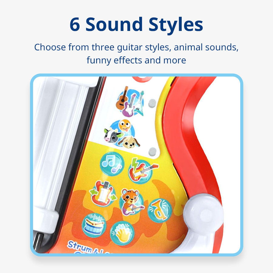 Kids can put on a legendary performance and play with the music, stay on the beat or create a unique song with different guitar styles and sound effects. They can jam on the fret keys and strum the strings bar to make music that's truly theirs.